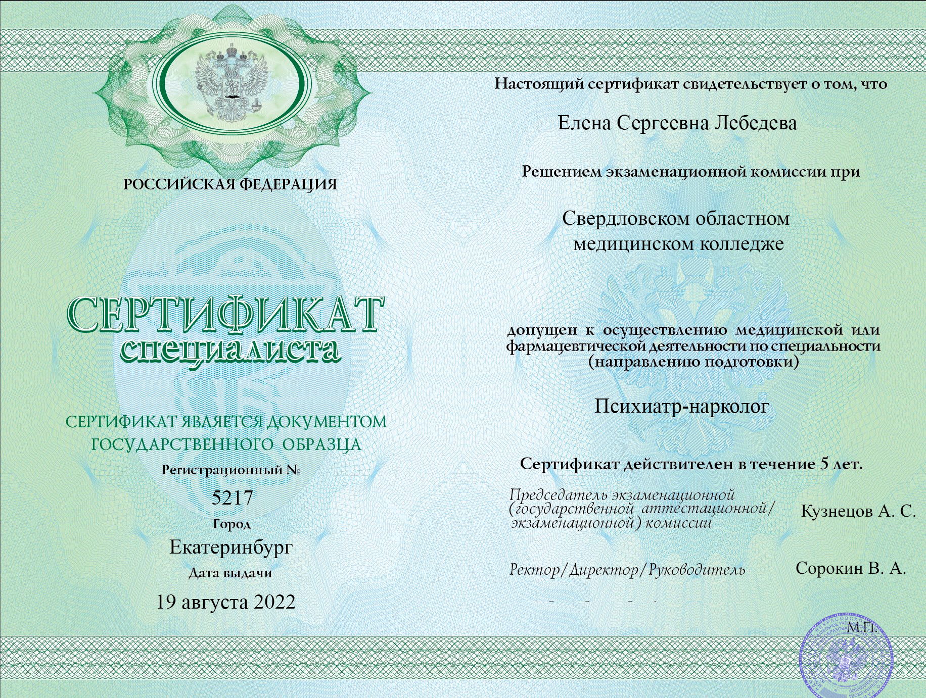 Елена Сергеевна Лебедева врач нарколог клиники доктора Стукаловой в Грибановском